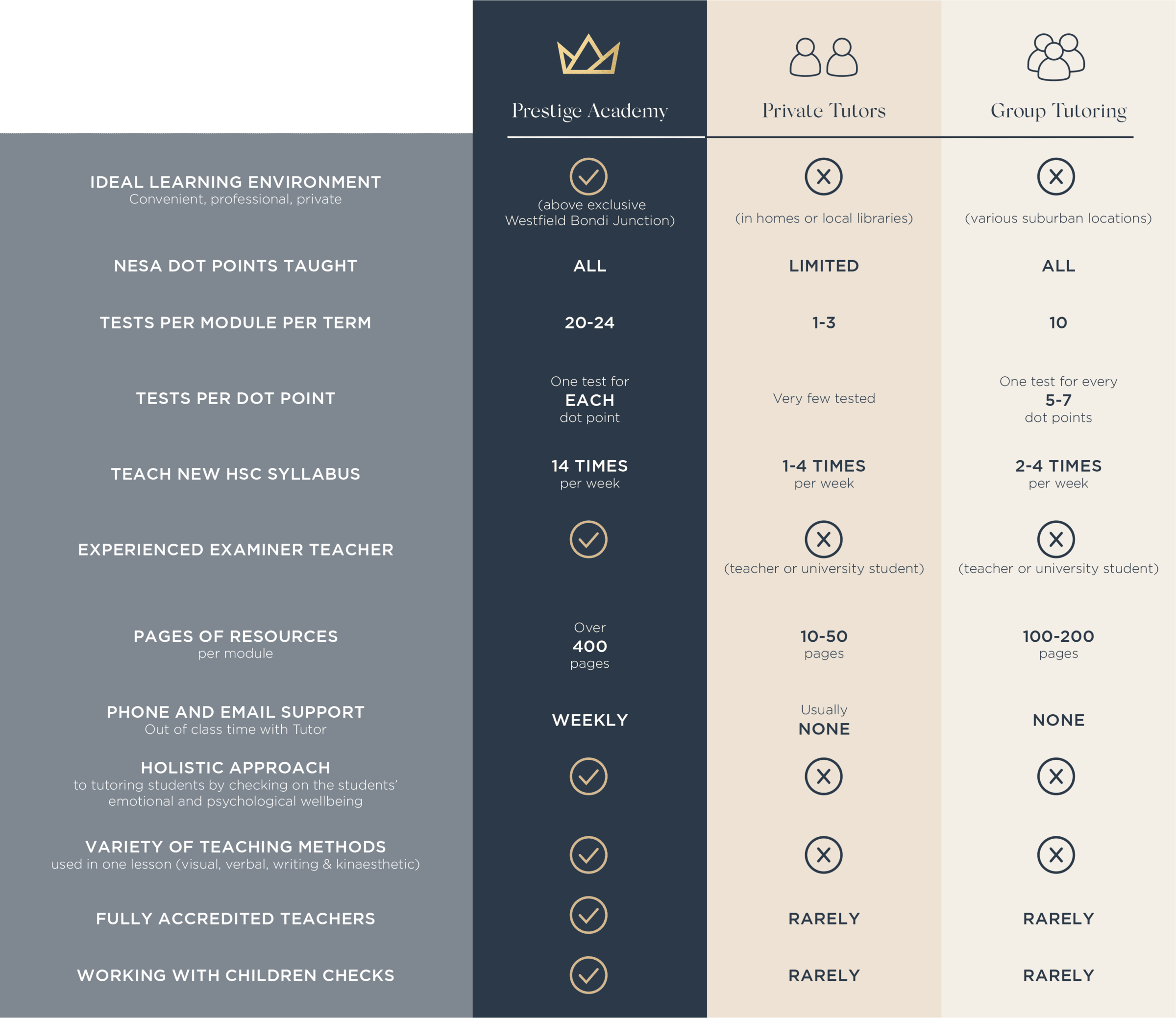 With an extensive background in law, 20 years of teaching, and first-hand experience writing exam papers and HSC marking, our university preparation program provides for credible, polished chemistry tuition.